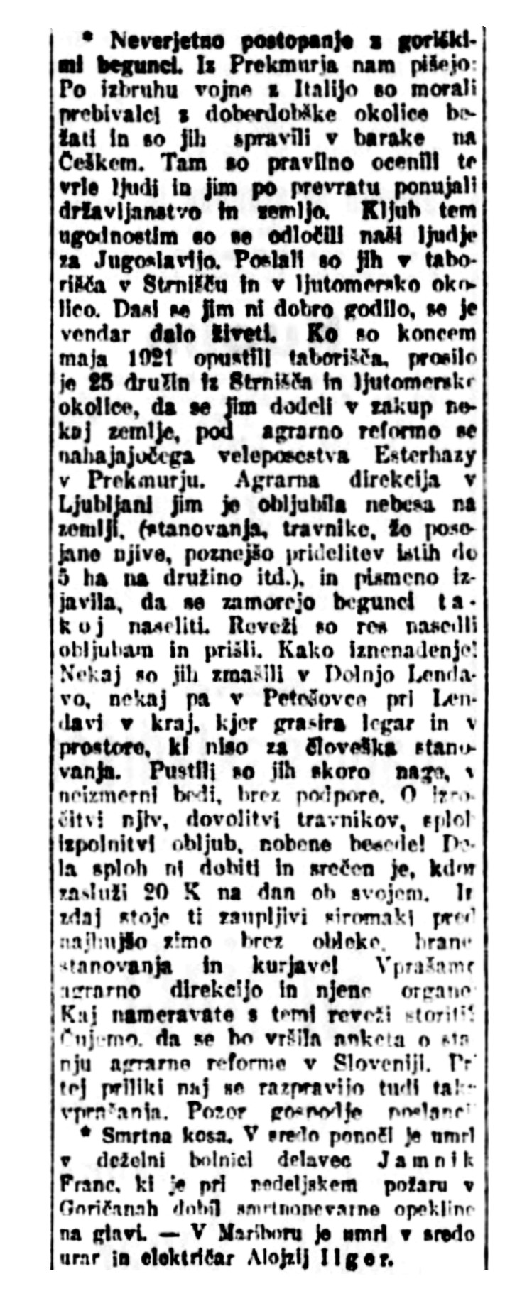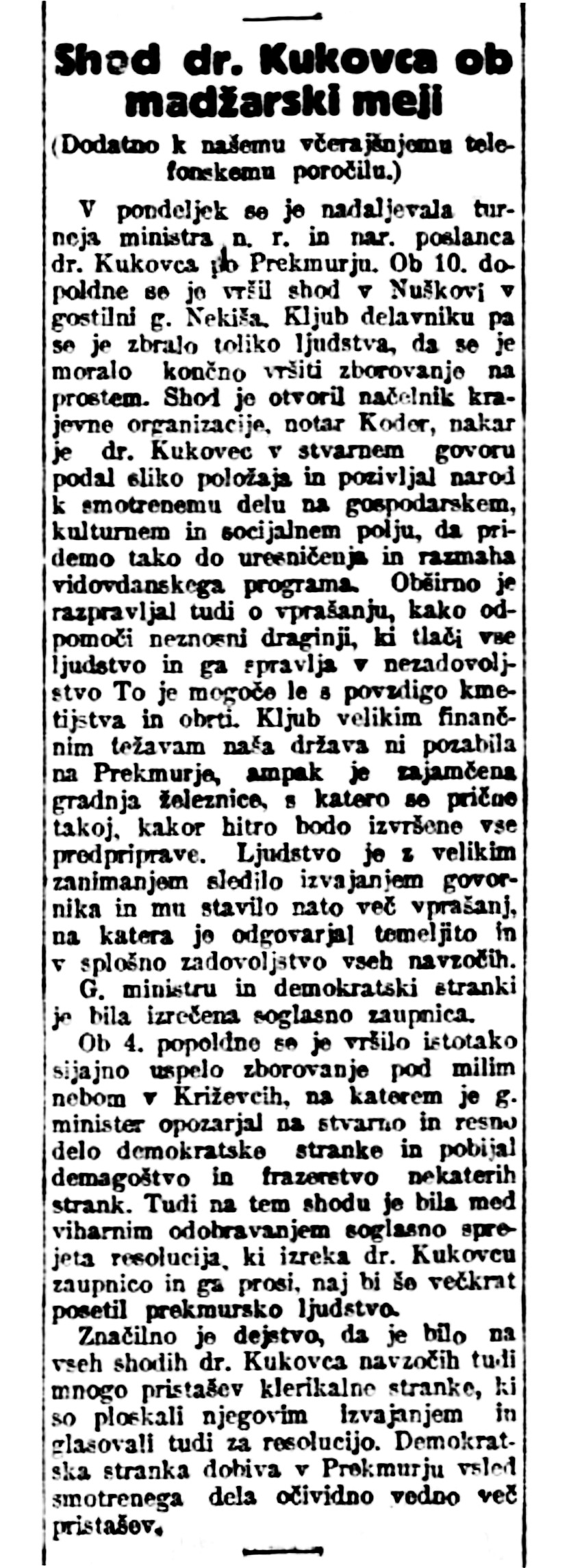 Izrezki člankov Jutro in Slovenec